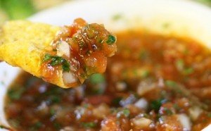 Egy serpenyőbe pirítsuk meg a hagymát, fokhagymát kb. 1-2 perc, és tegyük félre. Egy turmixgépbe tegyük bele az apróra vágott paprikát, a pirított hagymát, a fűszeres salsa szószt, sózzuk, borsozzuk és keverjük össze. Ezt követően adjuk hozzá a koriander leveleket. Még egy gyors keverés, és tegyük tálkába, és a hűtőbe, legalább egy éjszakára, tálalás előtt.