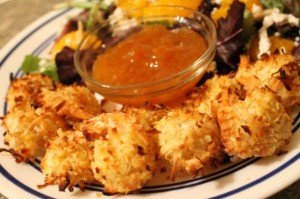 Tegyük egy tálba a kókuszreszeléket, egy másikba keverjük fel a tojást és a citromlevet. Egy harmadikba, pedig keverjük össze a lisztet, a barna cukrot, cayenne borst és a sót. Panírozzuk be a rákokat, liszt, tojás és kókuszreszelékbe. Egy sütőpapírral kibélelt tepsibe helyezzük a kész rákokat. Mielőtt a sütőbe tesszük, locsoljuk meg olvasztott vajjal vagy olajjal/ (ha van otthon olajszóró spray, azt is használhatjuk). Utána tegyük a sütőbe és fél óra alatt szép arany barnára süssük meg. Salátával és a mártással tálaljuk.
