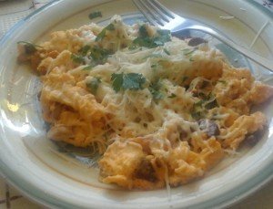 Tálalásnál, a forró omletet, szórjuk meg reszelt sajttal, így ráolvad a sajt és díszítsük petrezselyemmel.
