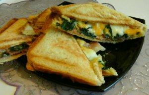 Ezt követően, az előre félig elkészített sonkás szendvicsekre, helyezzük el a spenótot, és szórjuk meg jó sok sajttal, tegyük a szendvics sütőbe és pirítsuk meg. Azonnal tálaljuk. Forró zöld teával kínáljuk.