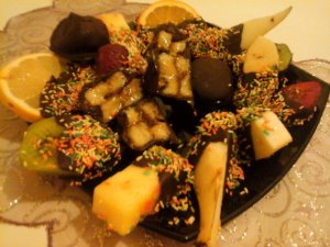 *Tipp: Mindig szárítsuk meg a gyümölcsöket alaposan, így nem folyik le róla a csokoládé, hanem jobban, egyenletesen a gyümölcshöz tapad. A barnulását úgy lehet elkerülni, hogy mártsuk az alma, körte szeleteket egy kis citromos vízbe, és utána szárítsuk le alaposan. Kipróbálható, aszalt gyümölccsel is: sárgabarack, mangó, ananász, kiwi stb..